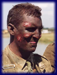 The gunshot wounds were created by researching the firearms that German’s used and what effect they had. Then I used prowax to create entry and exit wounds, coloured with wound filler, and different textures of pro-blood.