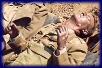 I went to the fire brigade local headquarters, they gave me information on fire, burn victims, explosion victims, they also gave me info on all sorts of different wounds that are inflicted on people (not a pretty sight). One important point that was used was the fact that when a body is burnt all the limbs constrict, resulting in bent arms, fingers, legs etc. also the tongue will protrude from the mouth, we used this info for the charred body scene.
