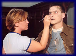 The role of a make-up artist is to make sure that the cast looks as authentic as we can possibly make them. To liaise with the rest of the crew especially the director for his visualisation of the scenes, costume dept to make sure which costumes/scenes we can cover with blood etc. and that we have the make-up and costume looking as if they are on the same person (not dirty faces with sparkly clean clothes), the cameraman to determine the best place to hide blood pumps etc. and to find out what exactly is in the shot.