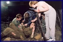 The role of a make-up artist is to make sure that the cast looks as authentic as we can possibly make them. To liaise with the rest of the crew especially the director for his visualisation of the scenes, costume dept to make sure which costumes/scenes we can cover with blood etc. and that we have the make-up and costume looking as if they are on the same person (not dirty faces with sparkly clean clothes), the cameraman to determine the best place to hide blood pumps etc. and to find out what exactly is in the shot.