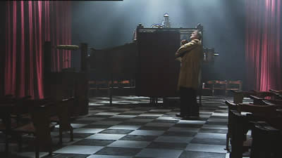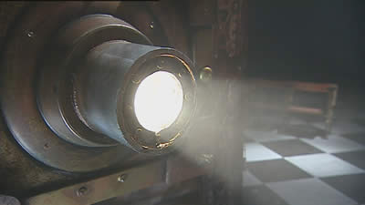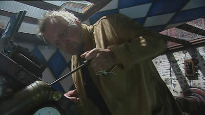 The machine squats centre stage like a giant robot cuckoo, part renaissance lanterna magica, and part nightmare contraption. The lantern chamber is a conflation of theatre, cinema and puppet booth, like the next level down from Lynch’s Black Lodge.